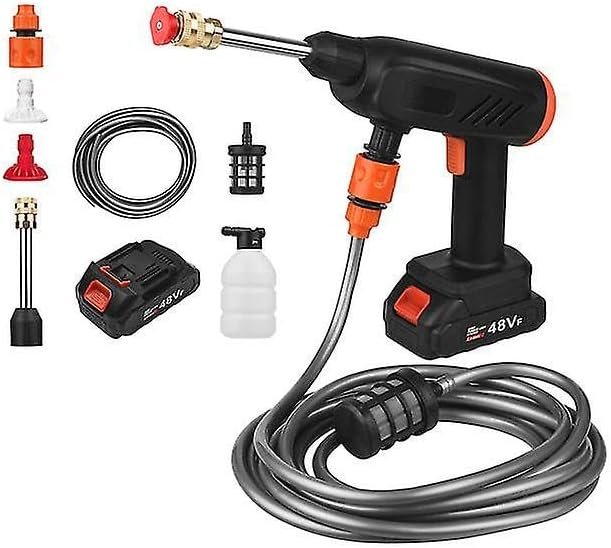 The battery capacity ensures long-lasting operation, giving you ample time to complete your cleaning tasks. Equipped with a range of accessories, this portable vehicle cleaning machine offers versatility and convenience. The included spray gun, extension wand, and various nozzles enable you to reach different areas of your vehicle with ease, from the roof to the wheels. Additionally, the adjustable nozzle settings allow you to switch between spray patterns, such as a focused jet or a wide-angle spray, to suit your specific cleaning needs.